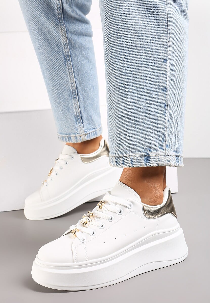 - Design: Modny fason na platformie z luksusowymi złotymi akcentami.
