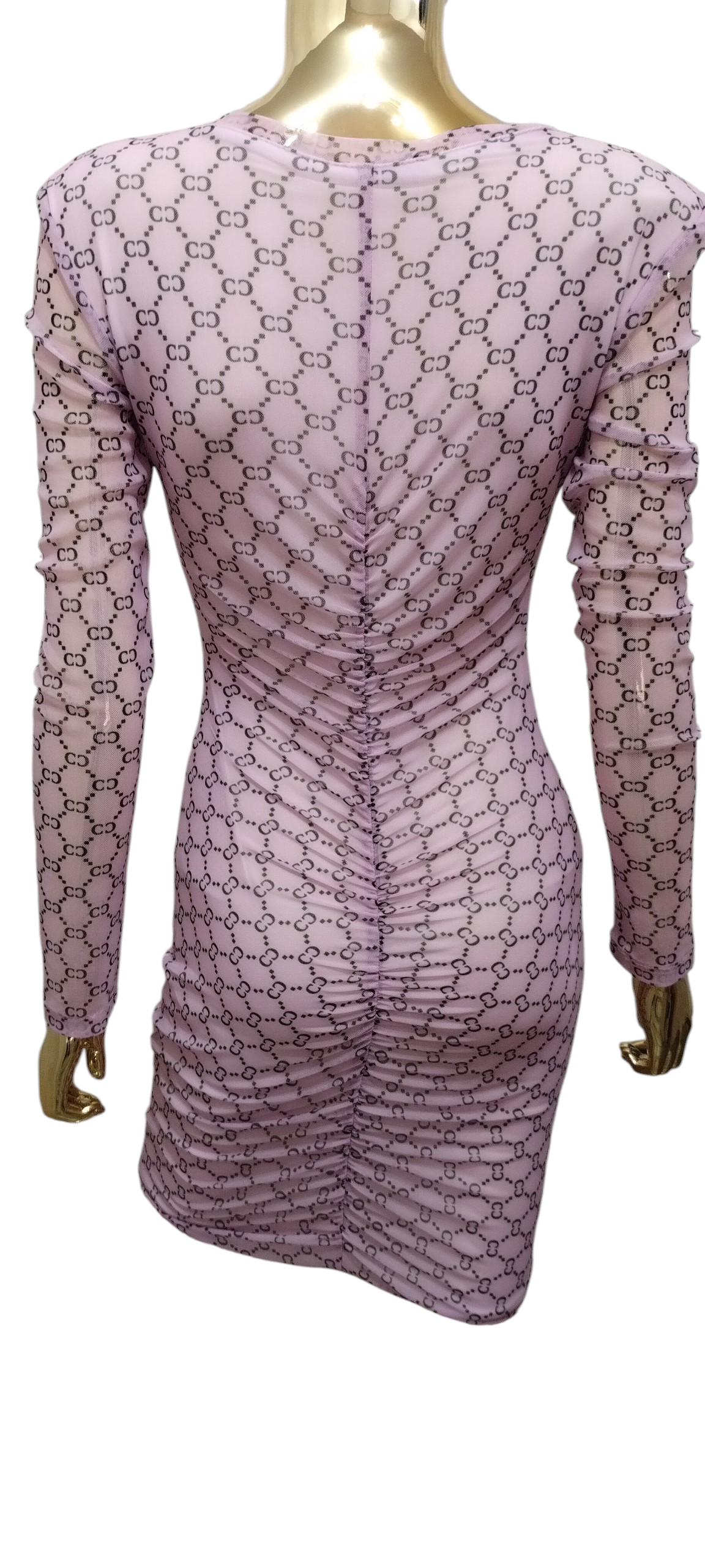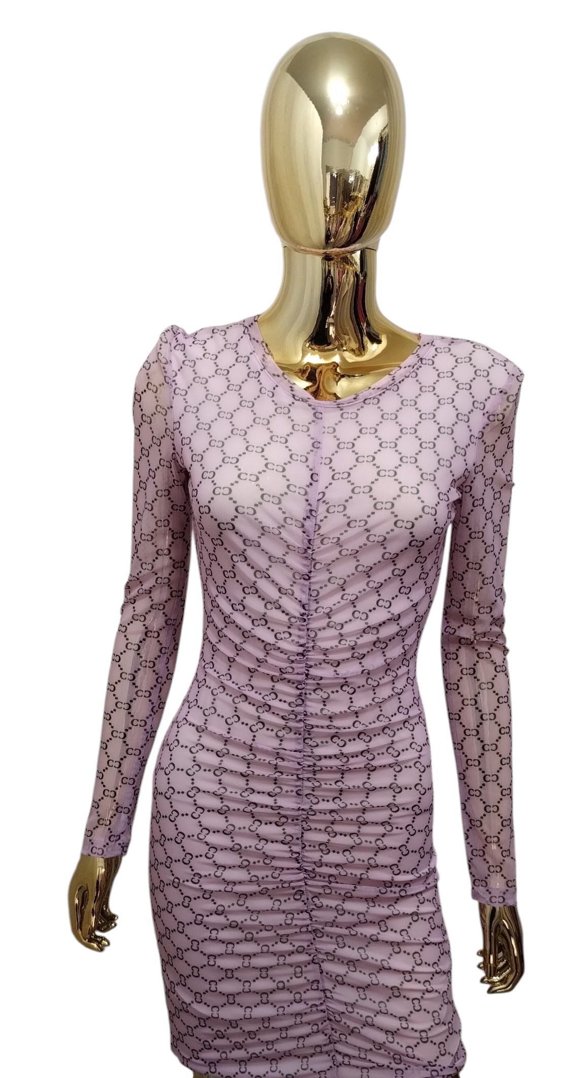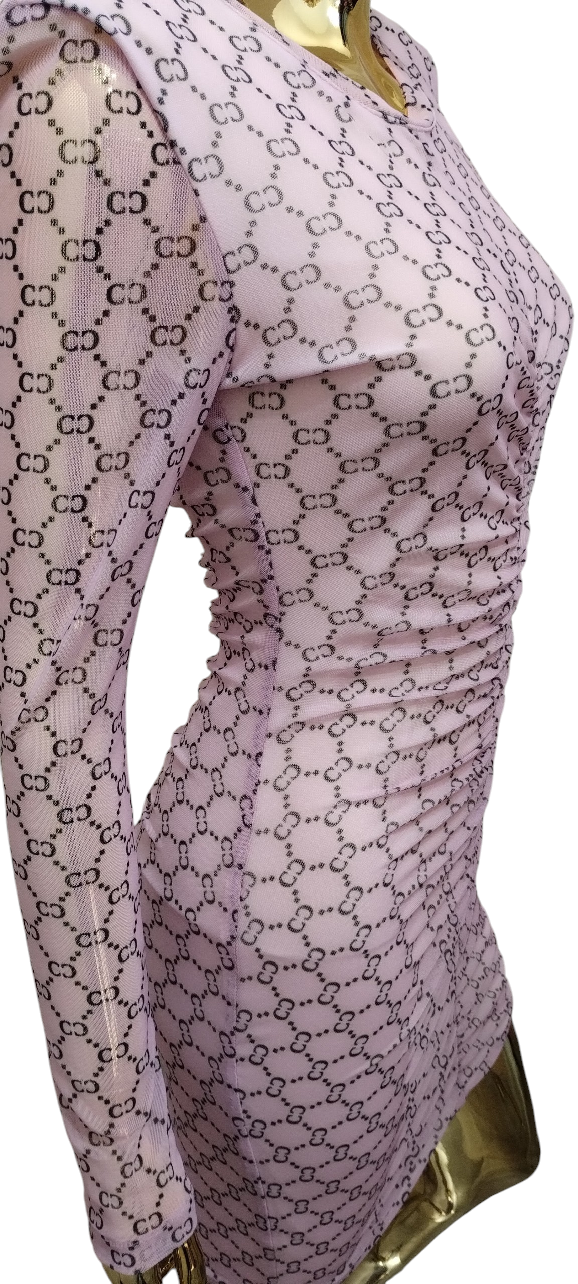 Podkreśl swój styl tą wyjątkową sukienką mini, która łączy nowoczesny design z kobiecą finezją. Wykonana z delikatnej, elastycznej siateczki, sukienka przyciąga wzrok wyrazistym, czarnym monogramem rozmieszczonym na całej powierzchni materiału.