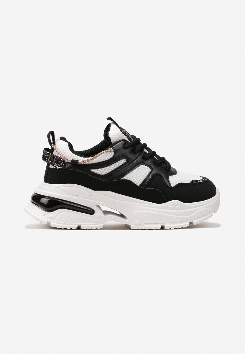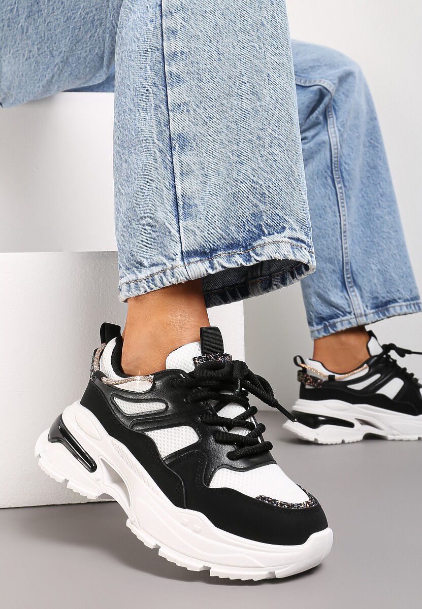 Idealne połączenie miejskiego szyku, wygody i odrobiny blasku! Te czarno-białe sneakersy na grubej podeszwie to absolutny must-have tego sezonu, który podkręci każdą Twoją stylizację, od casualowych jeansów po letnie sukienki.