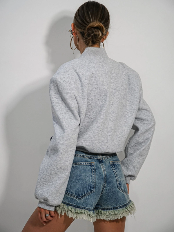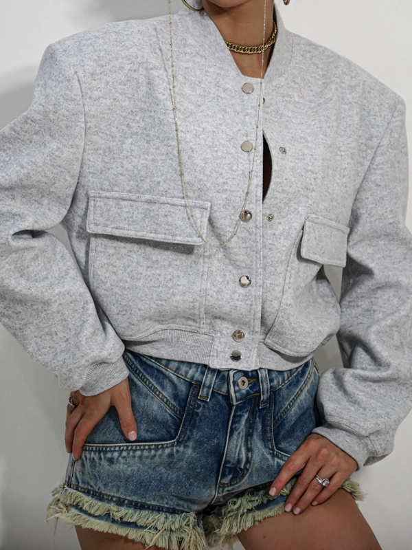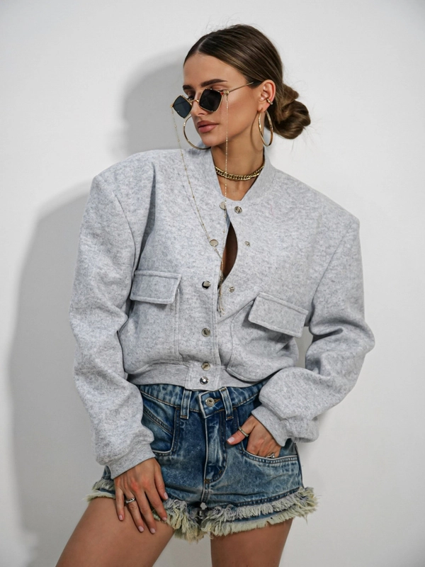 Odkryj nasz bestseller – szarą bomberkę oversize, która nada Twoim stylizacjom charakteru prosto z wybiegów! Ten model łączy casualowy luz z nutą awangardy, dzięki mocno zaznaczonym, wszytym poduszkom na ramionach.
